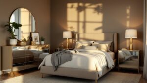 Mirrored furniture has made a serious comeback in bedroom design, and for good reason. A well-placed mirrored dresser or glass nightstand doesn’t just look polished,